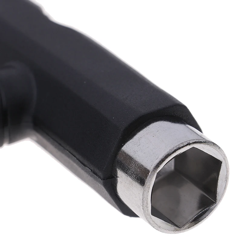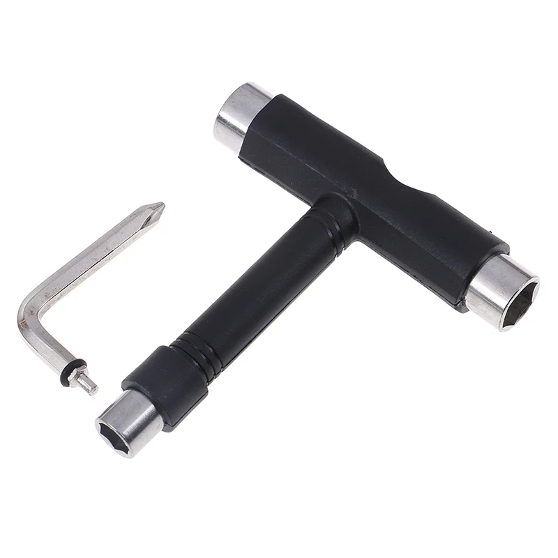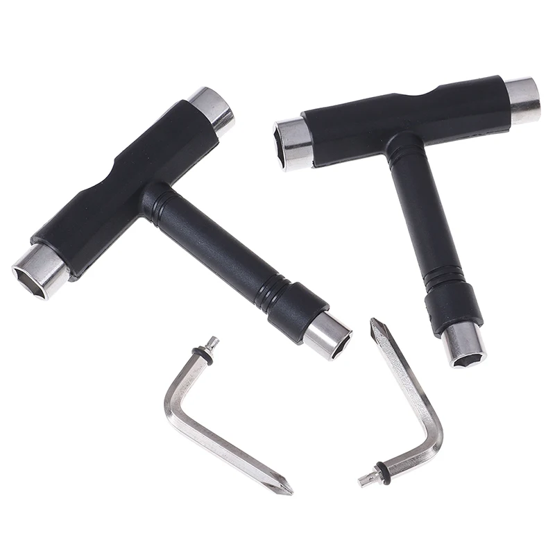 3 sockets (at 3 ends of T shape Tool) with different sizes for Tightening and mounting trucks, wheels, bearings.
