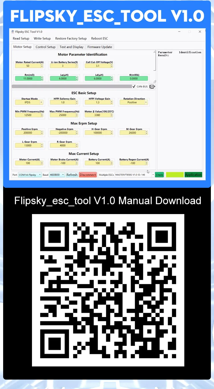 Programmable via Flipsky ESC Tool to be compatible with multi-types of motor, different battery