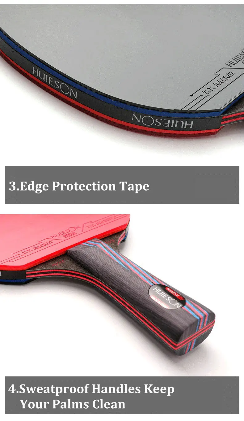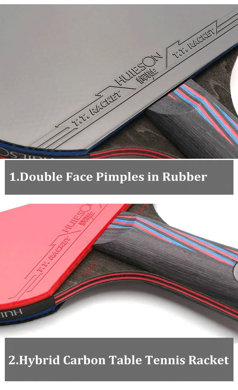 Huieson Carbon Fiber Table Tennis Racket Blade Double Face Pimples-in Racket Rubber Ping Pong Paddle for Senior Players