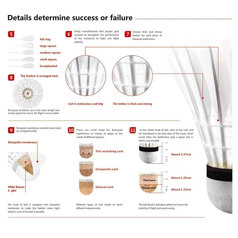 Kawasaki KING KONG 500/700 Shuttlecock Badminton Feather 3 IN 1 Technology Durable shuttle Badminton Ball