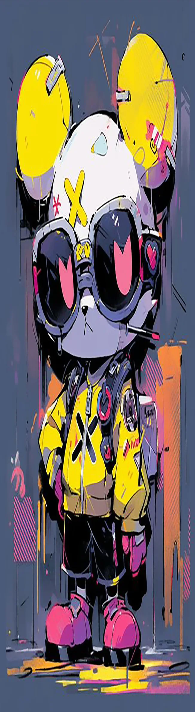 Red Hat Cool Boy Big Ears Bear Pattern Electric Scooter Anti-slip Sticker Sandpaper Skateboard Grip Tape Sheet 84*23cm