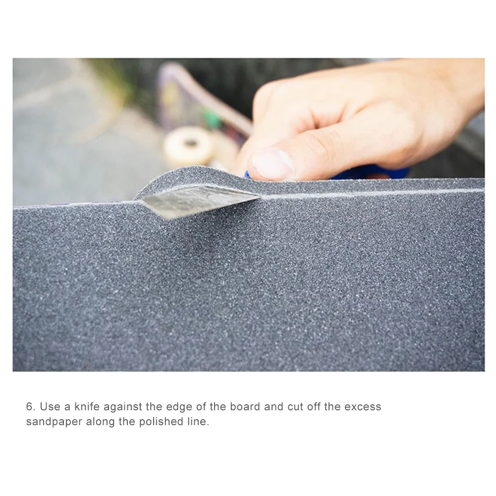 Can be cut to fit most skateboards, skate scooters, kick scooters, slide plates, roller boards, etc
