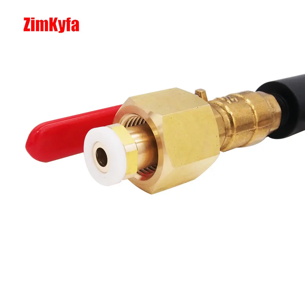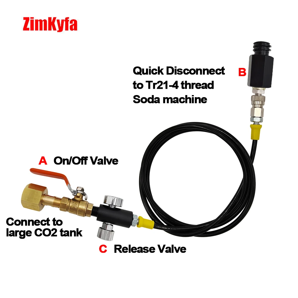 This item can connect your W21.8-14,CGA320 threaded Co2 tanks to your Soda Stream Tr21-4 threaded machine directly and you no need to refill your soda cylinder anymore but still can make soda water yourself at home as well,it has a ball valve as controller to adjust CO2 flow if you only want suitable CO2 in water, a soft and durable 150cm(1.5meters) length hose and quick disconnect.