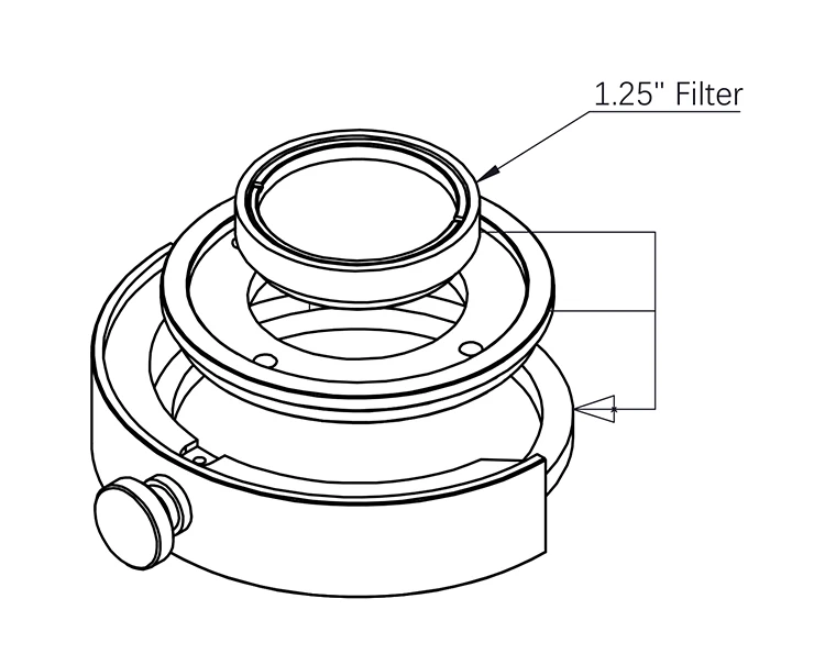 No need for buying another set of filter drawers, the 2”-1.25”filter adapter ring will help you directly fit the 1.25”filter onto 2” filter drawer or filter wheel.